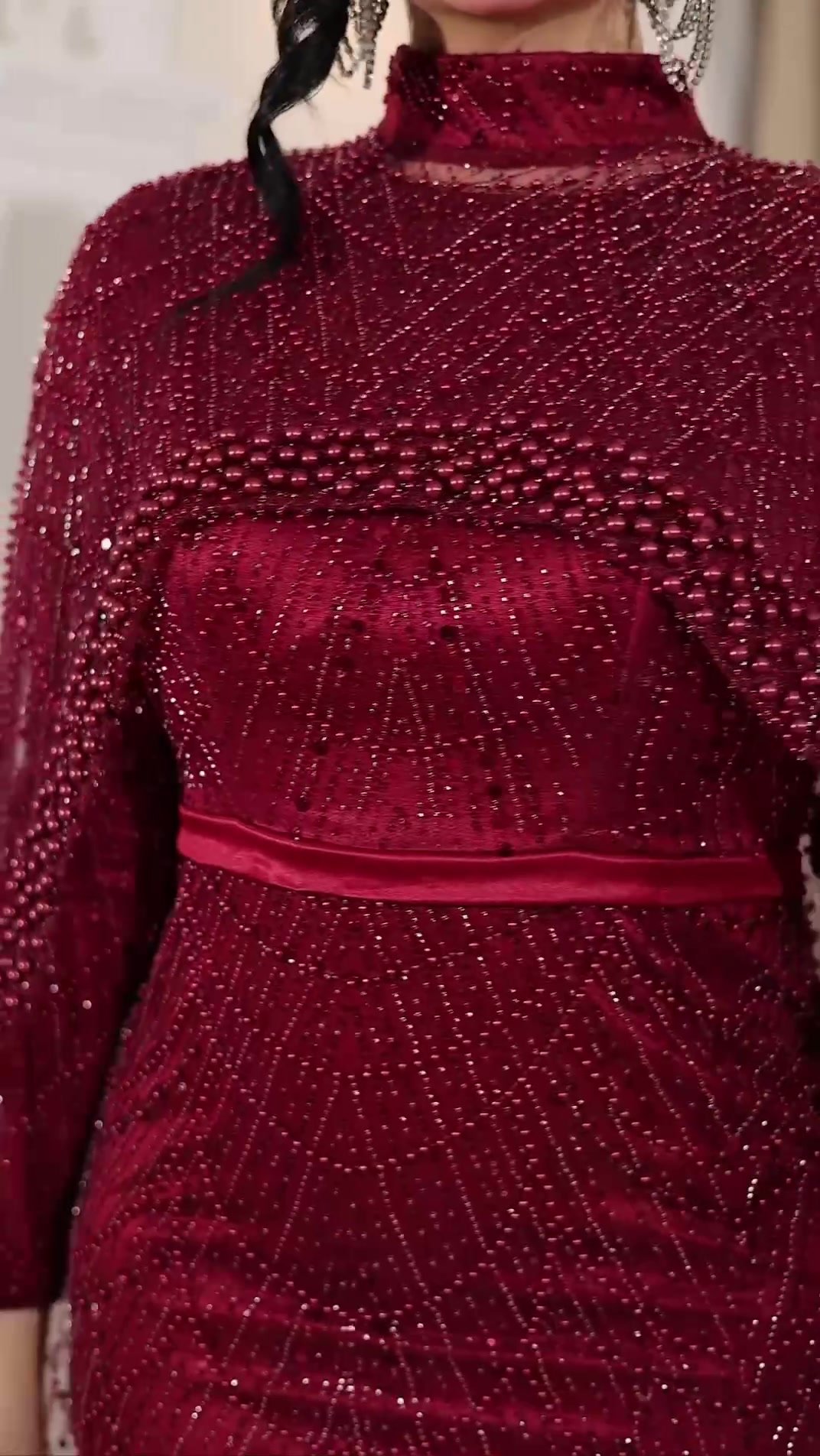 Shine with a breathtaking look in this stunning gown, designed with a slim-fit cut that highlights the beauty of the figure, and sophisticated details stemming from its enchanting shimmer and elegant embroidery.