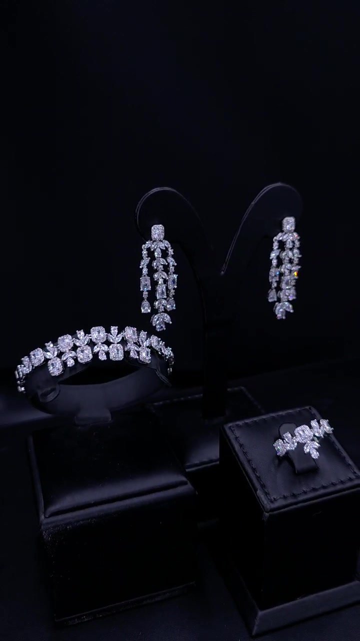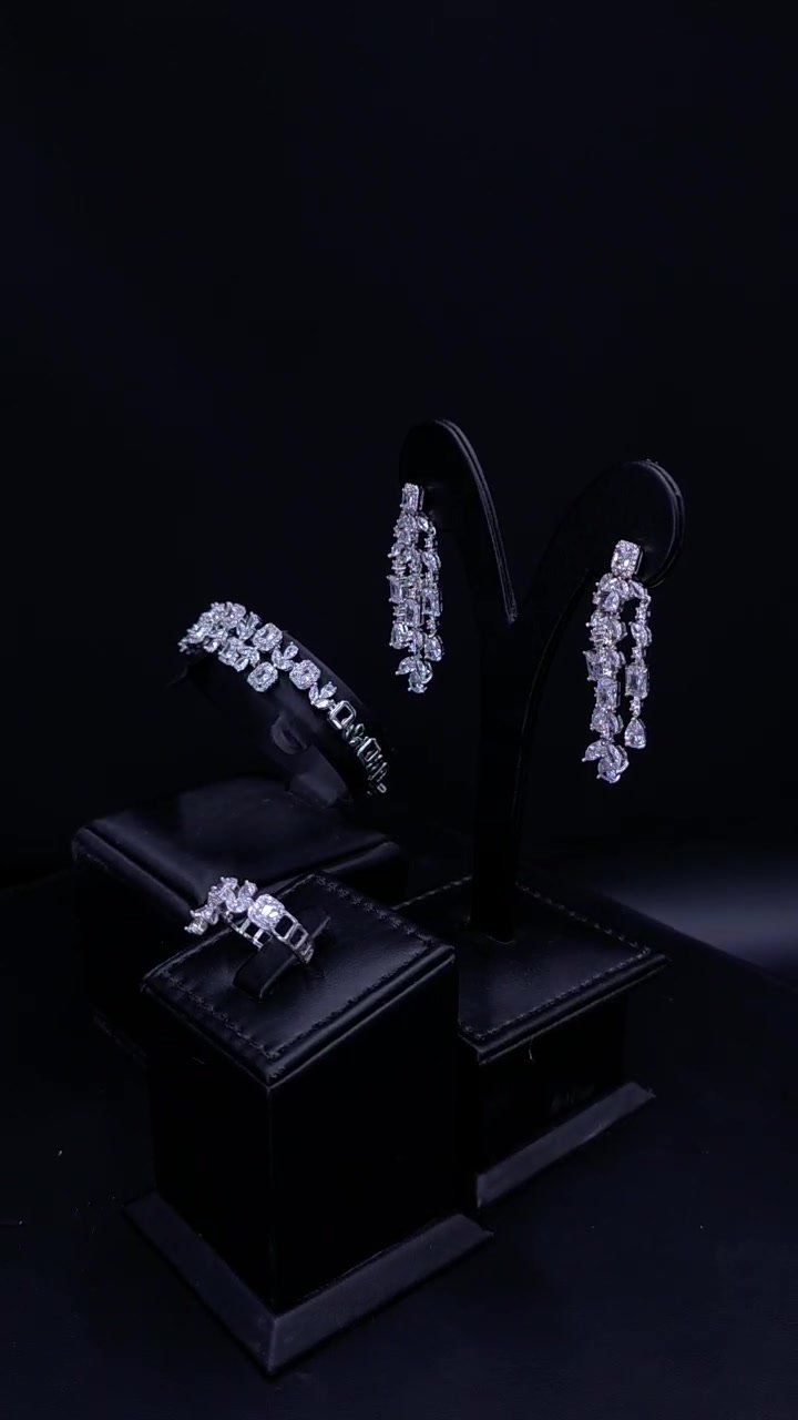 Main Description: Make an unforgettable entrance with our Grand Chandelier Statement Set. This luxurious four-piece collection is engineered to deliver the breathtaking brilliance of a diamond necklace. The magnificent centerpiece is the Choker-style necklace, featuring an intricate arrangement of high-grade, precision-cut Zirconia stones. The design showcases cascading rows of crystal elements, creating a mesmerizing “chandelier” effect that perfectly illuminates the neckline and draws the eye.